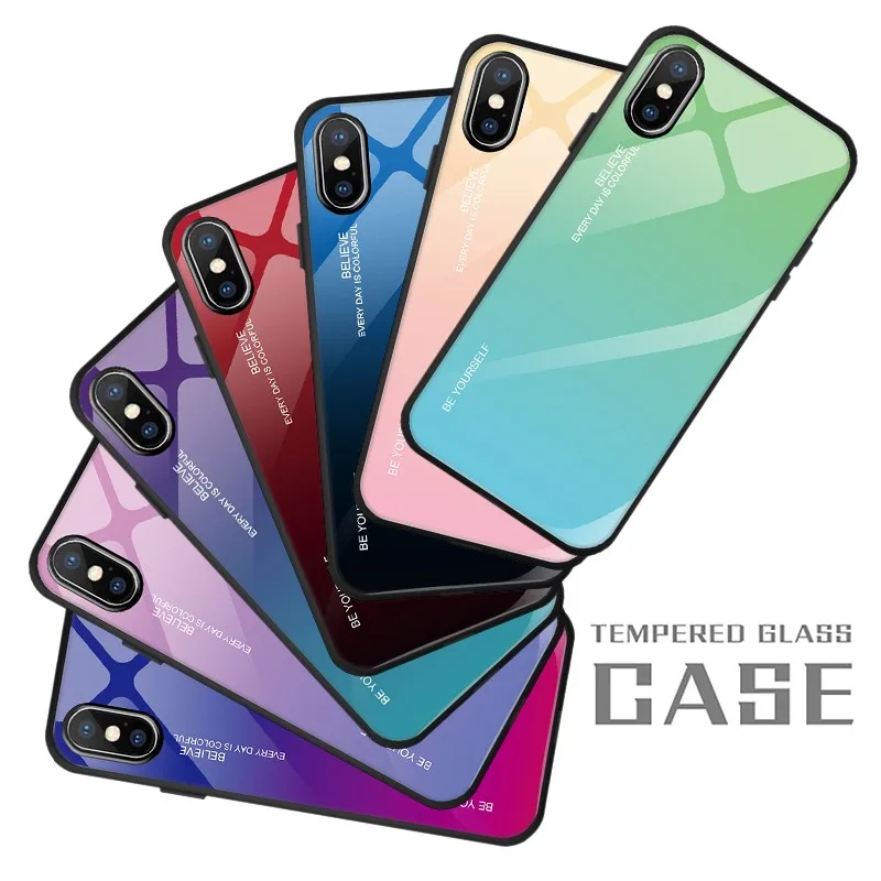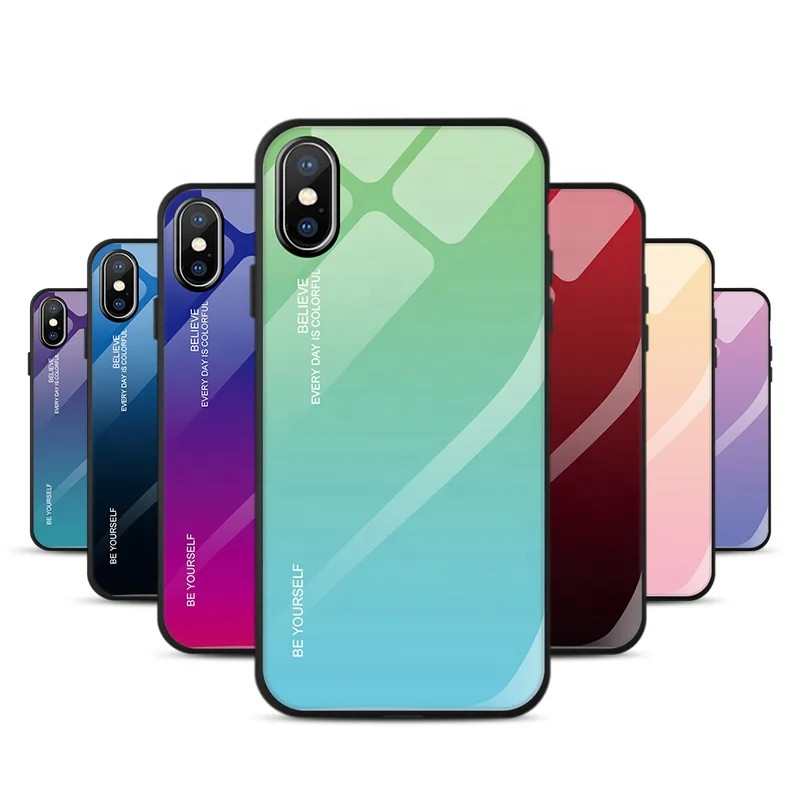 BXM For iPhone X XS XR XS Max Cases Gradient Tempered Glass Mobile Phone Case Gradient Color Back Shell Seven Colorful Luxury